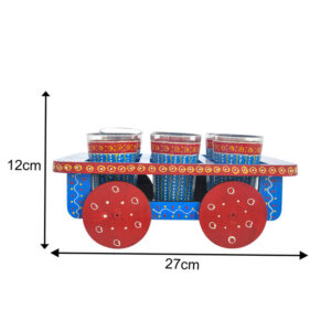 HandPainted Alluminium Tea Kettle with Four Glasses and Wooden Tray For Home Decor , Tea Party , Serving