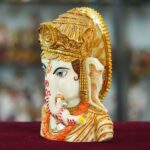 Marble Dust Ganesha Ji Face Statue Sitting on a Table