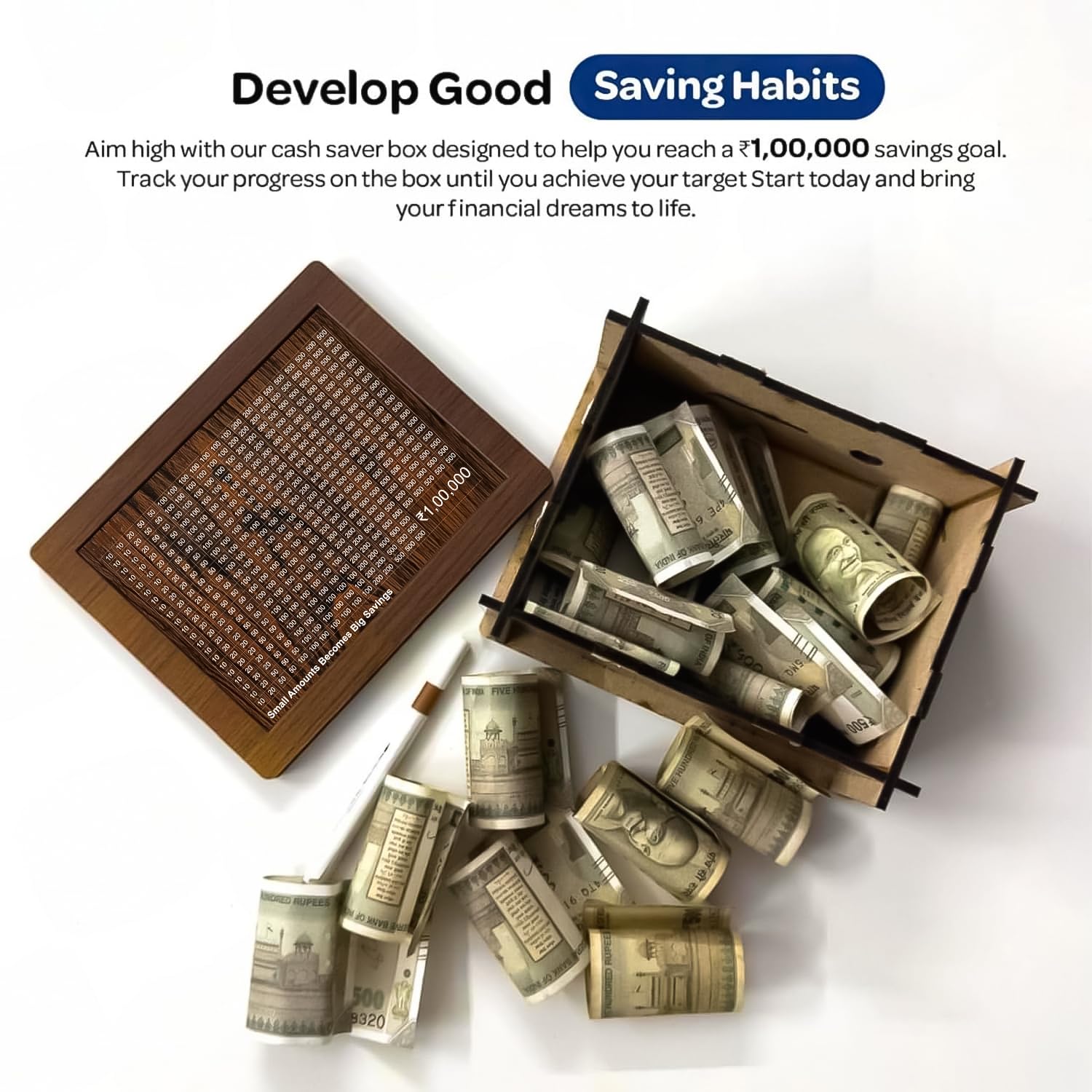 Wooden Coin Piggy Bank for Kids, Money/Piggy Bank, Carved Coin Box, Savings Challenge Box, Money Saving Box for Adult, Money Save Box, Gullak Savings Box, 100000 Money Saver. Size- 21*13*12 cm Weight-250g